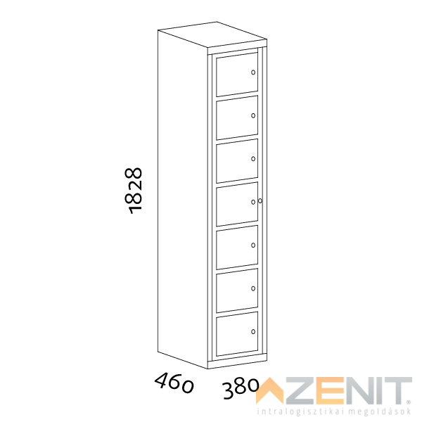 Kiadószekrény mosodai 1 oszlopos 7 rekeszes 5007 típus 1828x380x460 mm RAL 7035 szürke