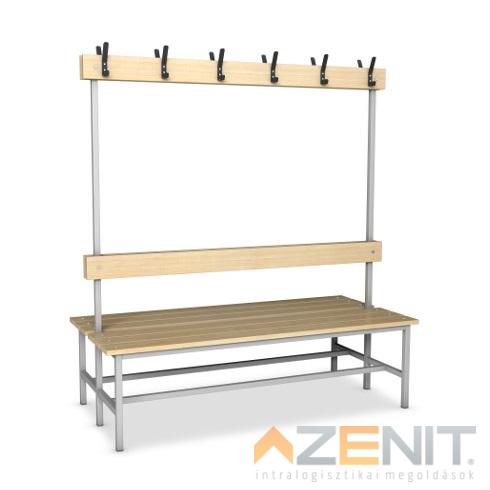 Öltözőpad lécezett háttámlás kétoldalas 1500 mm teljes magasságxmélység 1640x690 mm...