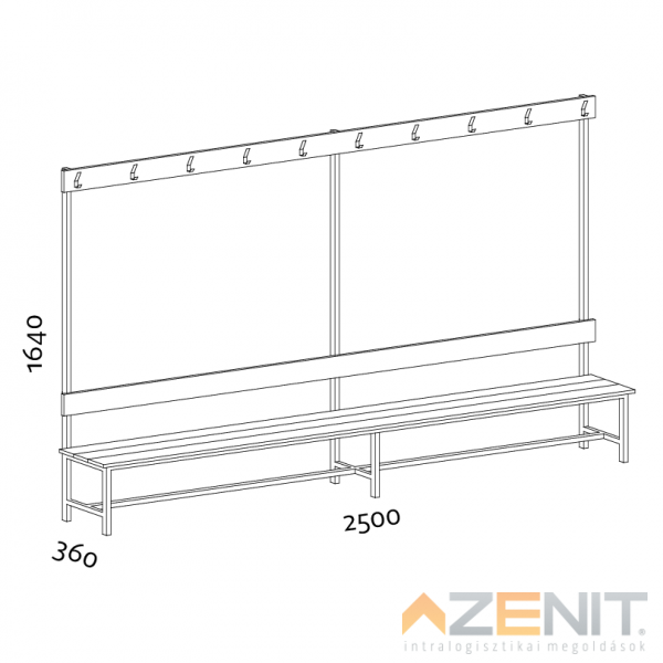 Öltözőpad lécezett háttámlás kétoldalas 1000 mm teljes magasságxmélység 1640x690 mm...